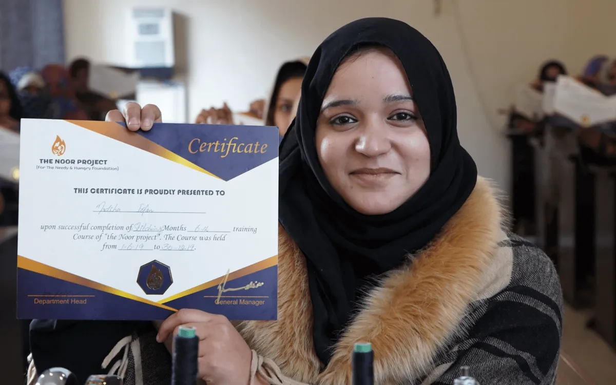 "I wondered if I would ever earn enough to help my father live... My hope began to grow when I started learning the skills to stitch and design. The Noor Project helped me become financially stable enough to cure my father's damaged kidneys."